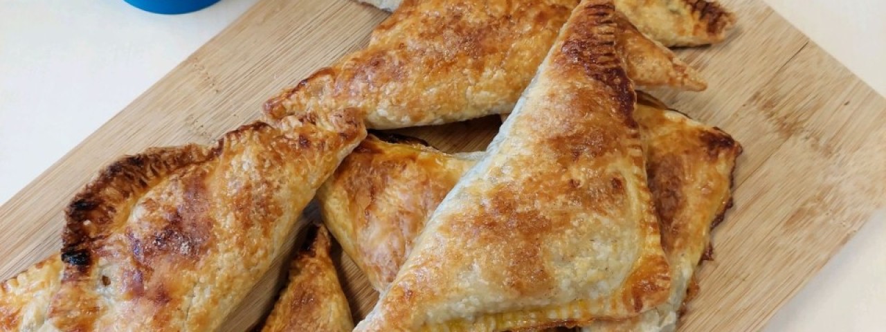 Appelflappen bakken, van een muizenhuisje, en een dak bakken we een appelflap. Tijdens het eten van de appelflappen: T is lekker, nee, heel lekker, nee t is mega lekker!