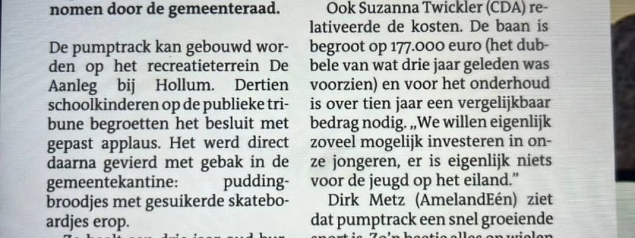 Dat de gemeente Ameland een pumptrackbaan heeft gerealiseerd bij de Aanleg voor al de Amelander jeugd.
