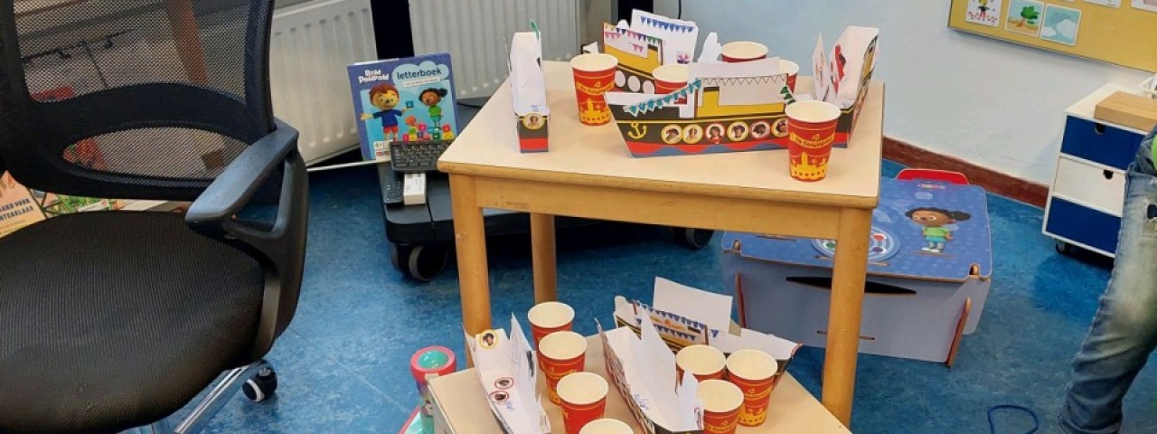 Gister moesten we onze geknutselde stoomboten klaar zetten….. Vanmorgen vonden we bij onze boten een beker chocolademelk! We hebben samen met de Sint geproost op de nieuwe stoomboot. Ook zijn we hard aan de slag geweest met de Pieto-toets, vandaag toets 5 gedaan; precisie mikken en vangen. We zijn allemaal weer geslaagd!