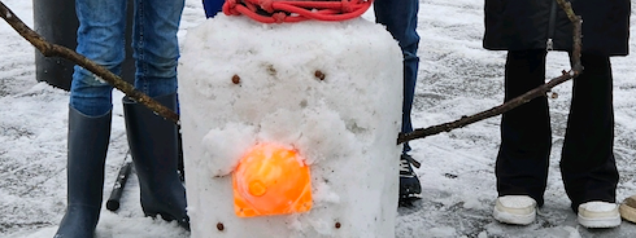 We hebben een sneeuwpop gemaakt op het plein!