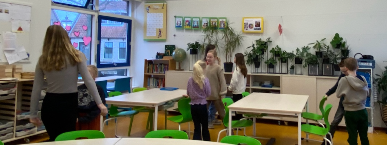 Vanmorgen zijn we begonnen met een coöperatieve werkvorm ‘wandel en wissel uit’. Op deze manier hebben we elkaar verteld over de afgelopen vakantie.