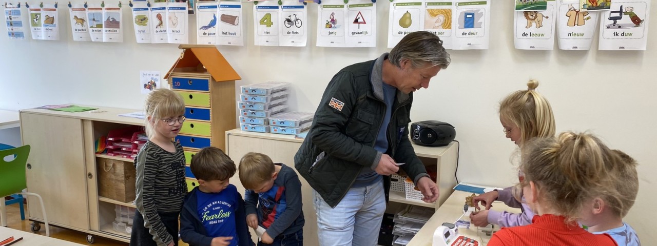 Groep 5 leert rekenen met geld! We zijn vooral bezig met het verschil bepalen van bedragen en geld terug tellen. We hebben al veel klanten gehad! De kinderen uit de onderbouw en meester Geert hebben al iets bij ons gekocht. Dat vinden we super leuk, de winkel blijft geopend tot de meivakantie.