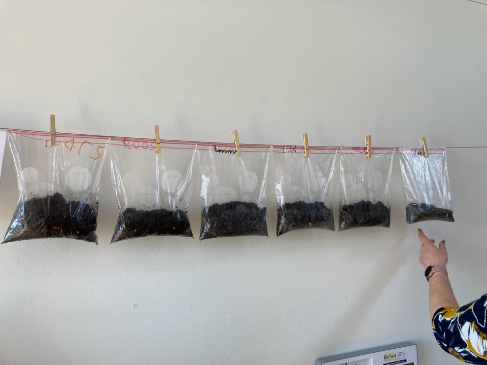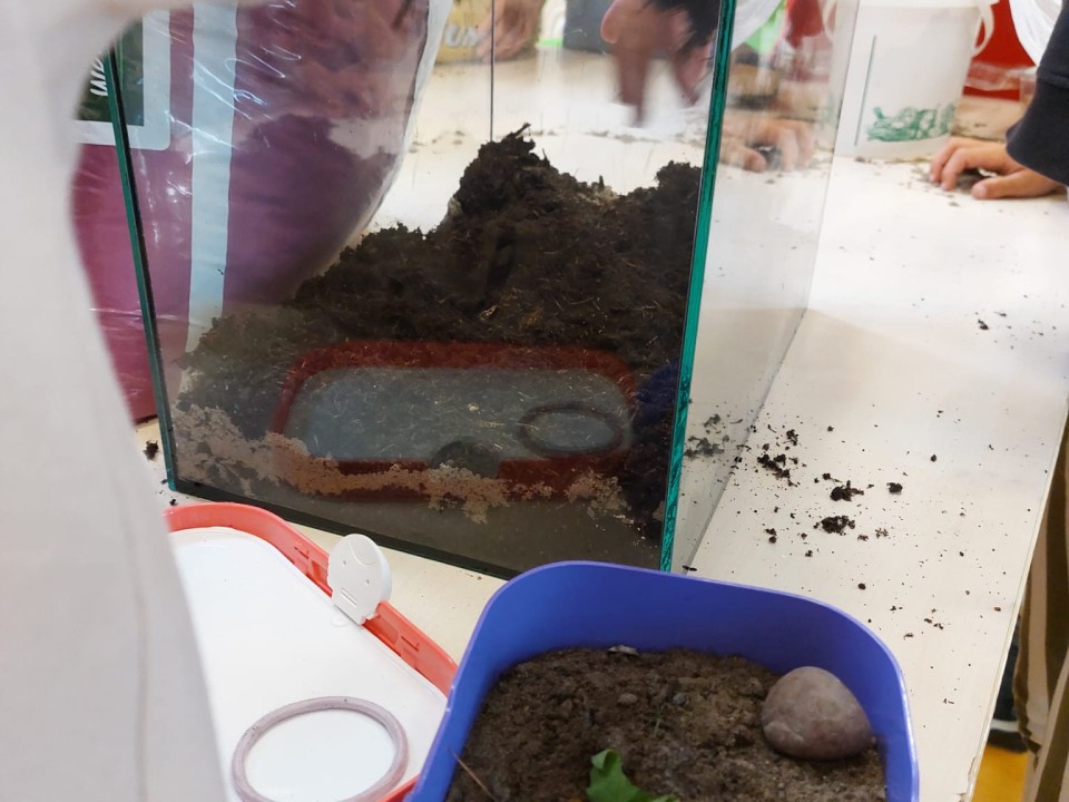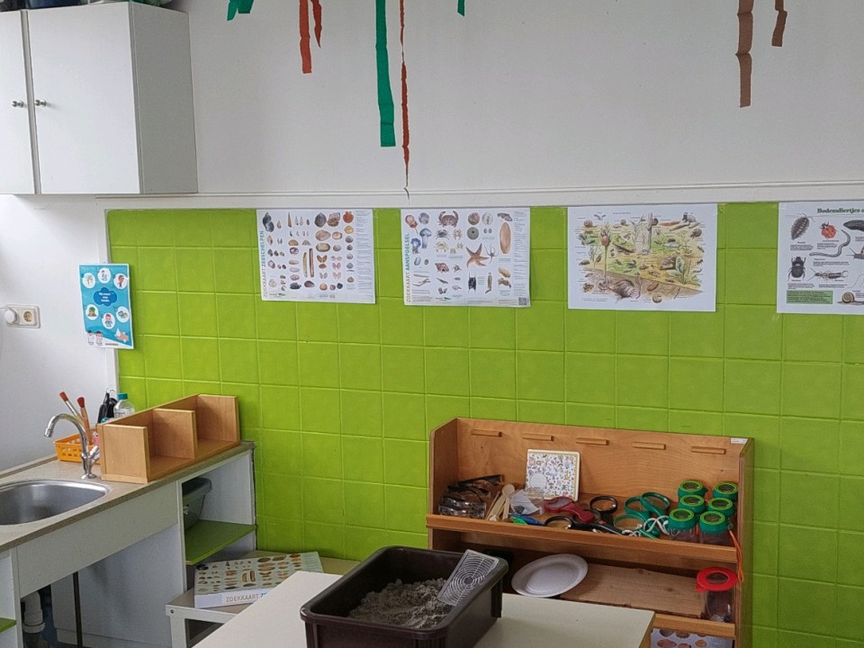 We hebben een wormenbak gemaakt volgens een officieel stappenplan en deze gepaard met blaadjes, een beetje water en onze glibberige vrienden erin op de thema kast geplaatst. Een doek eromheen en morgen kijken of we al gangetjes, poep en verdwenen blaadjes ontdekken!