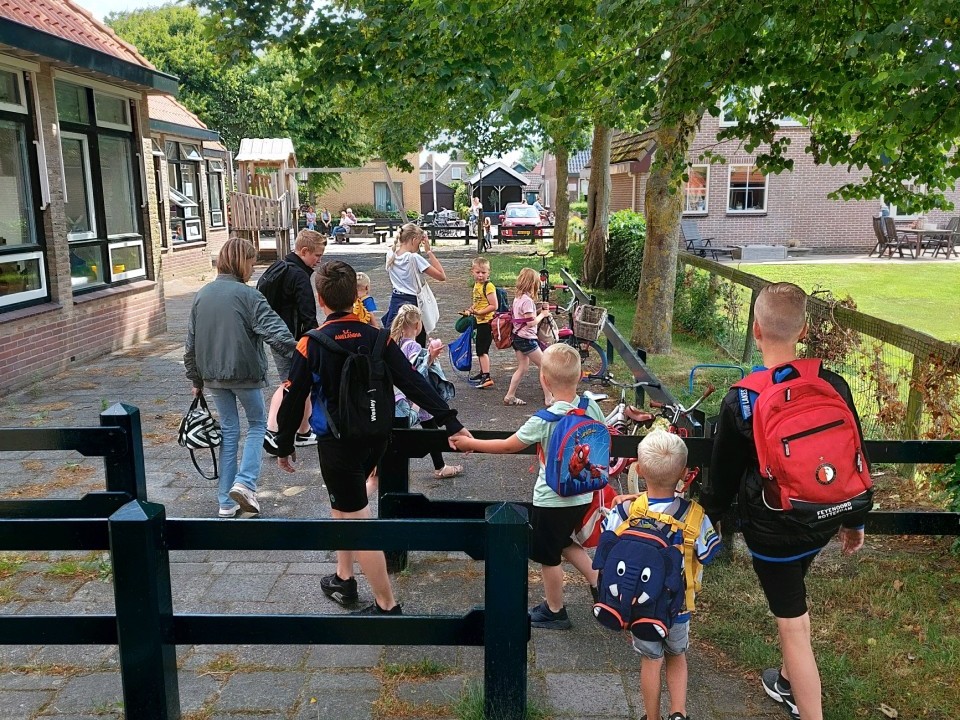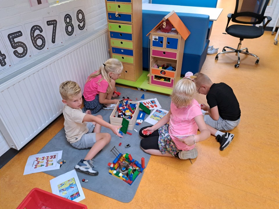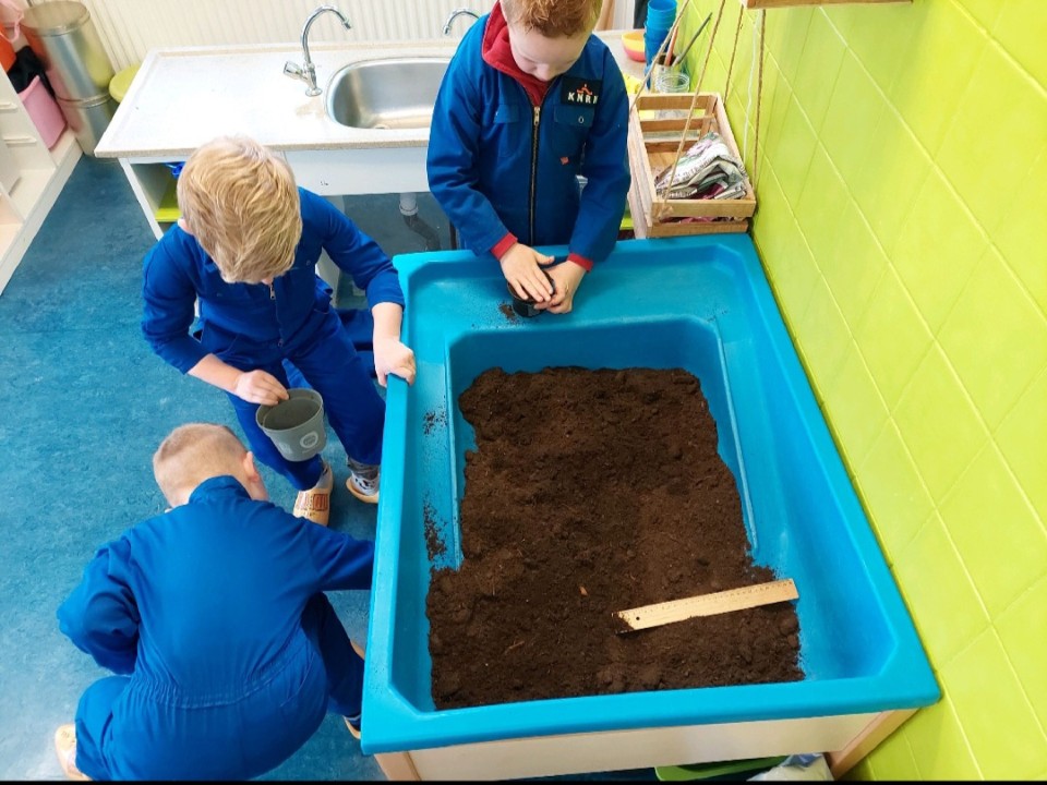 Vanuit het thema lente vorig schooljaar groep 1 en 2, de kwekerij, is de potgrond vanuit de zandtafel in de bloembakken gedaan..... en ja gelukt!