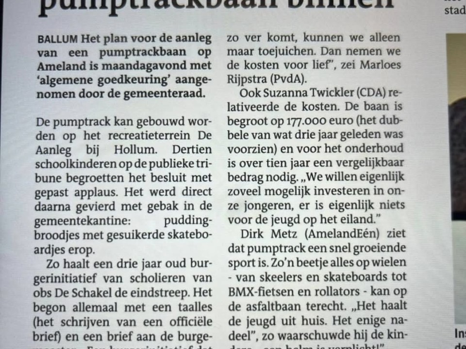 Dat de gemeente Ameland een pumptrackbaan heeft gerealiseerd bij de Aanleg voor al de Amelander jeugd.