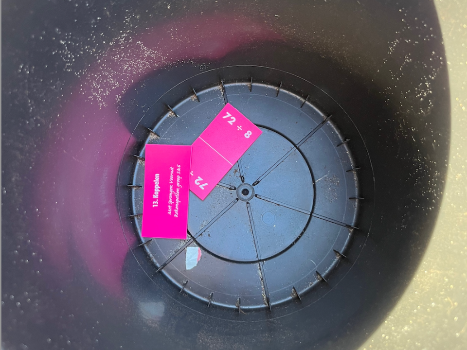 Een Met sprongen vooruit spel waarbij we gedeeld door sommen oefenen, het is eeb spannende wedstrijd